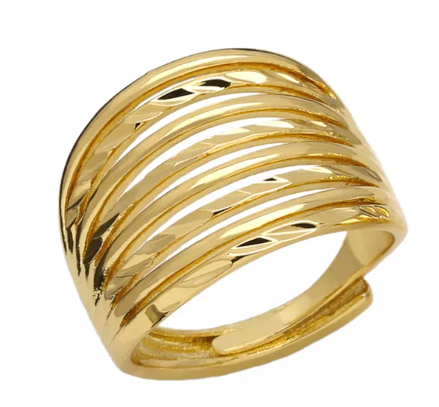 La bague bridge se compose de 4 niveaux avec une matière texturée. Elle reste très légère à porter.